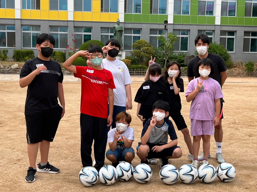 아동들과 함께 축구수업